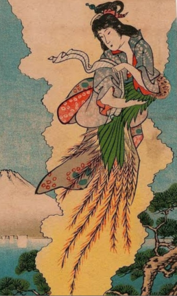 Tennin o “creature celesti” sono messaggeri del cielo, simili ad angeli. Le femmine sono note come tennyo o “vergini del cielo”.